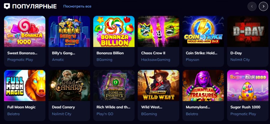 Производители | Novomatic, Spinomenal, Belatra, Amatic, Igrosoft, Playtech, NetEnt, Microgaming, Red Tiger, Endorphina, NetGame, Evoplay, Betsoft, Ezugi, Push Gaming, Onlyplay, Mascot и другие |