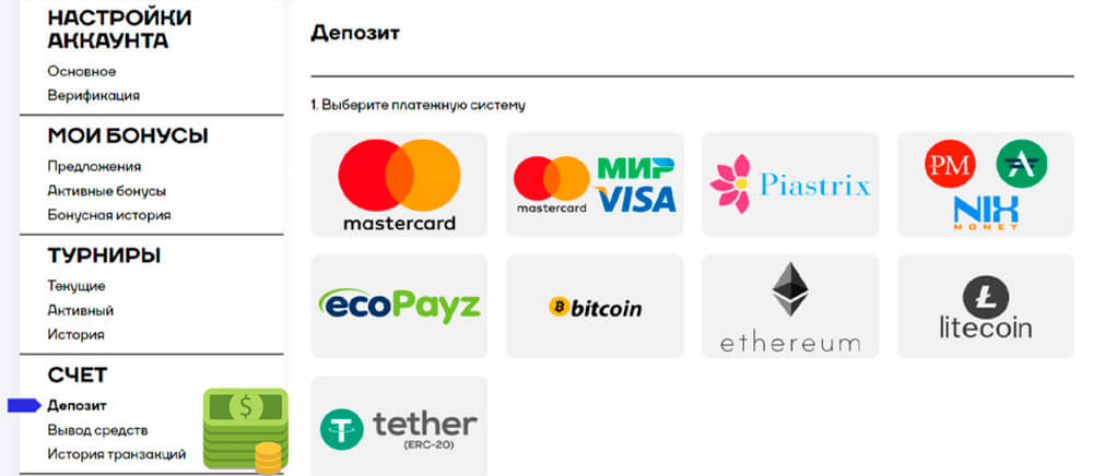 Российским клиентам casino должны быть предложены современные и разнообразные способы оплаты. Осуществлять финансовые транзакции гемблер может с помощью следующих платежных инструментов:
