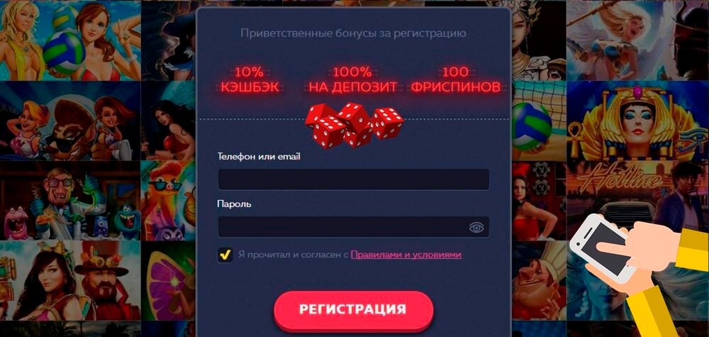 Играть в русских казино на рубли невозможно без регистрации. Создать аккаунт пользователь может по номеру телефона, по email или авторизовавшись через соцсеть. Игроку необходимо выбрать страну и валюту ведения счета. Логин и пароль клиент казино получит в приветственном электронном письме после создания аккаунта. Во время регистрация по номеру телефона необходимо ввести код подтверждения, который высылается через СМС. Верификационная ссылка отправляется тем игрокам, которые решили использовать адрес электронной почты.